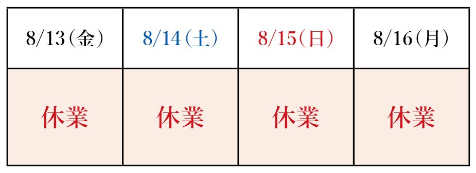 夏季休暇のお知らせ