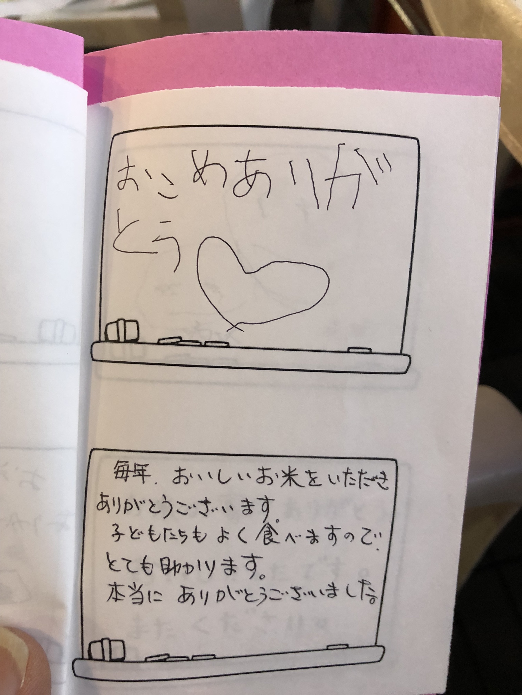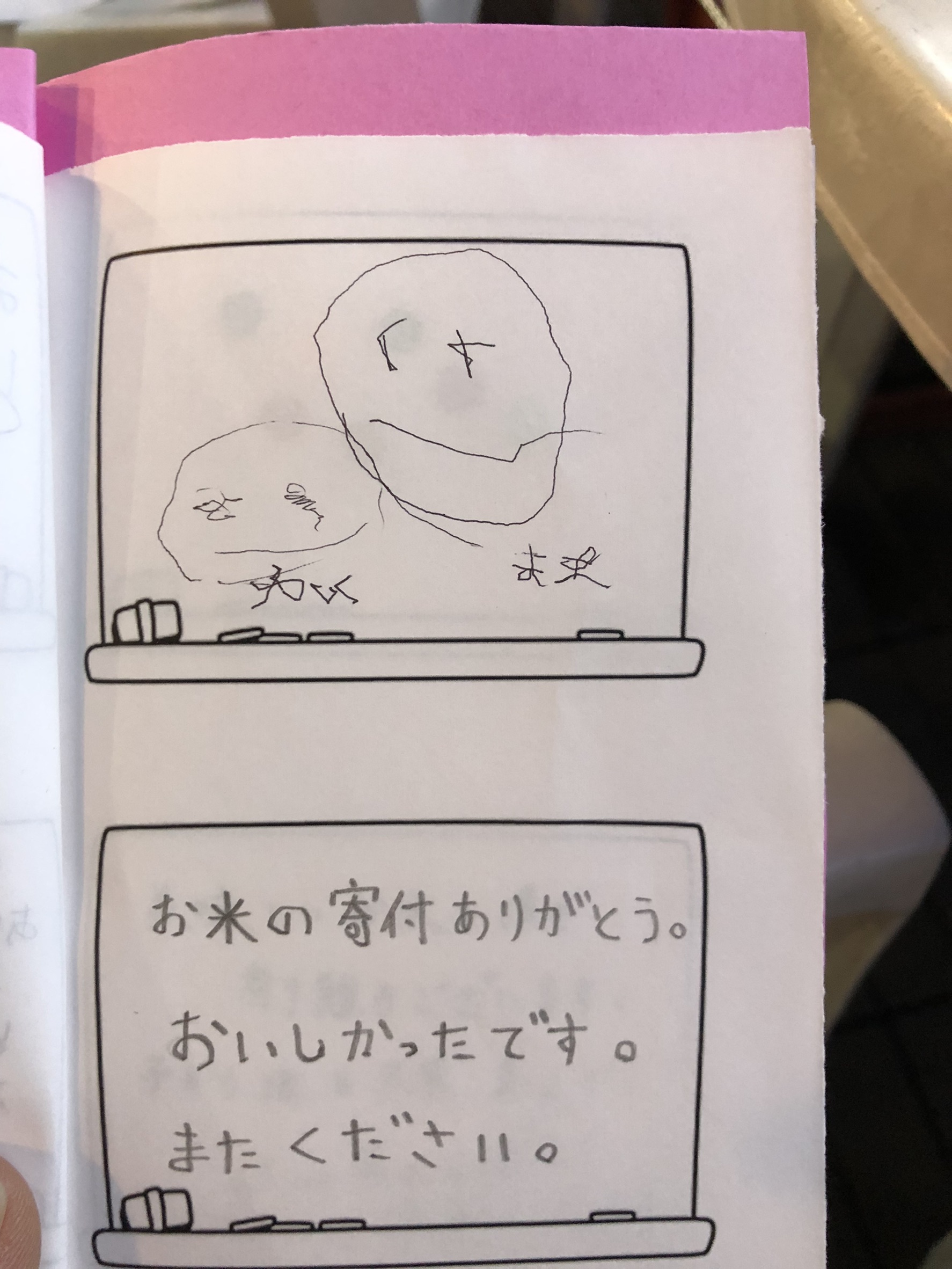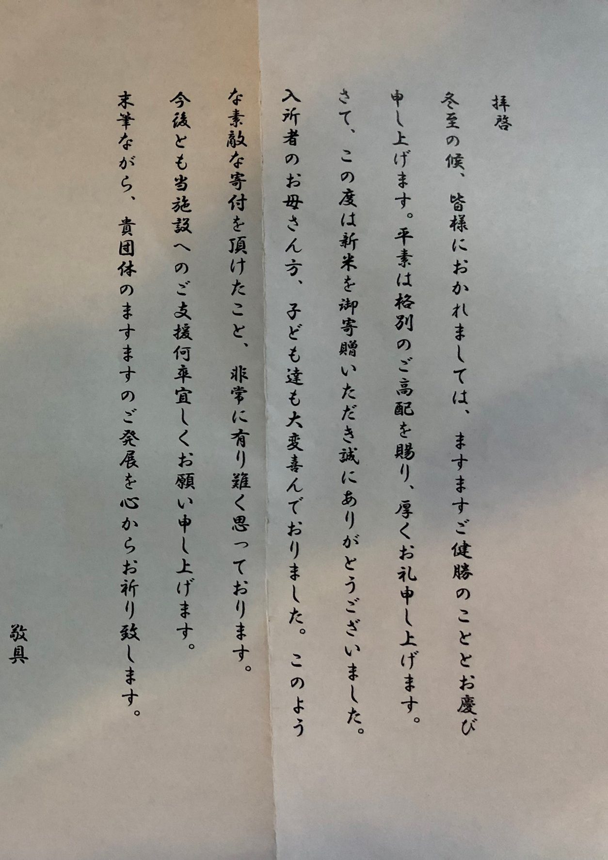 お米を寄与させていただき、そのお礼の手紙をもらいました。